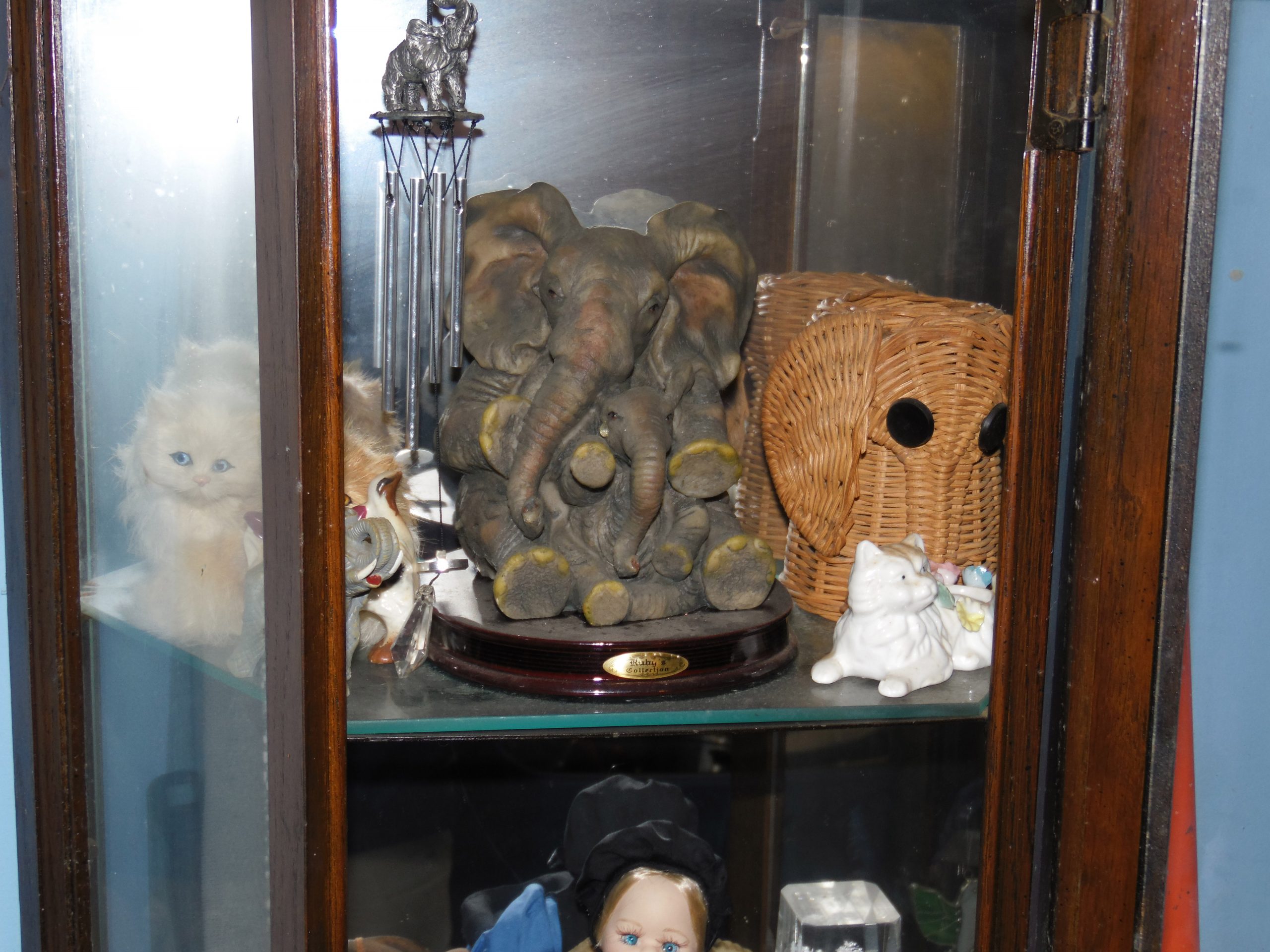 -carved wood animals (elephants)